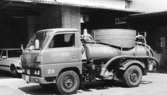 | 昭和28年 | 各家庭(肥溜め)より自動三輪車に桶25本を積んで農家等の肥料に物々交換で業を始める |